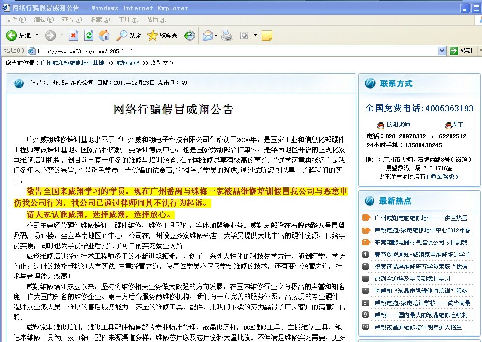 為何你們的網(wǎng)站與珠海華升內(nèi)容相似,是否你們抄襲華升網(wǎng)站內(nèi)容? 回答是:現(xiàn)在培訓(xùn)機(jī)構(gòu)太多,內(nèi)容相似不怪,都在渾水摸魚.接到多人及單位投訴,以抄襲華升液晶網(wǎng)信息占為已有的虛假信息在多個(gè)信息網(wǎng)站廣泛流傳......