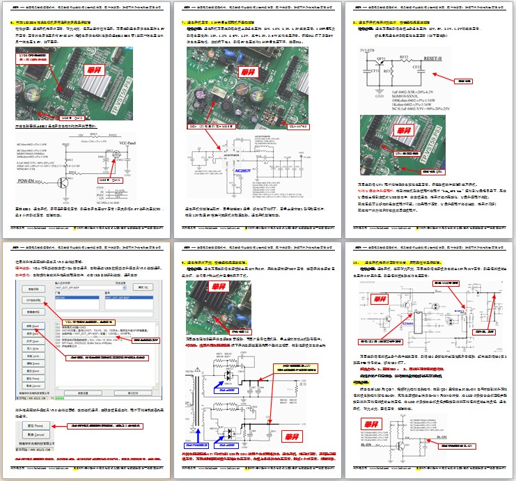 電路原理圖紙分析、開機啟動過程、實物電路對照、常見故障分析、快速檢測技巧、檢修實例教程、