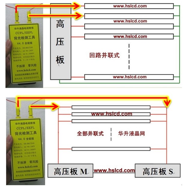 華升出品的CCFL背光檢測(cè)工具是不需要回路的,不需要拆屏連接回路就可以快速檢測(cè)燈管。