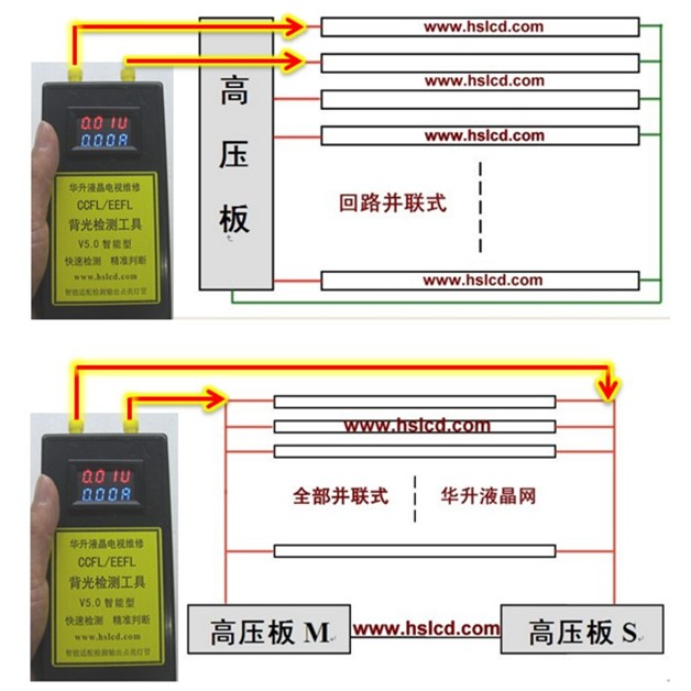 華升出品的CCFL背光檢測工具是不需要回路的,不需要拆屏連接回路就可以快速檢測燈管。