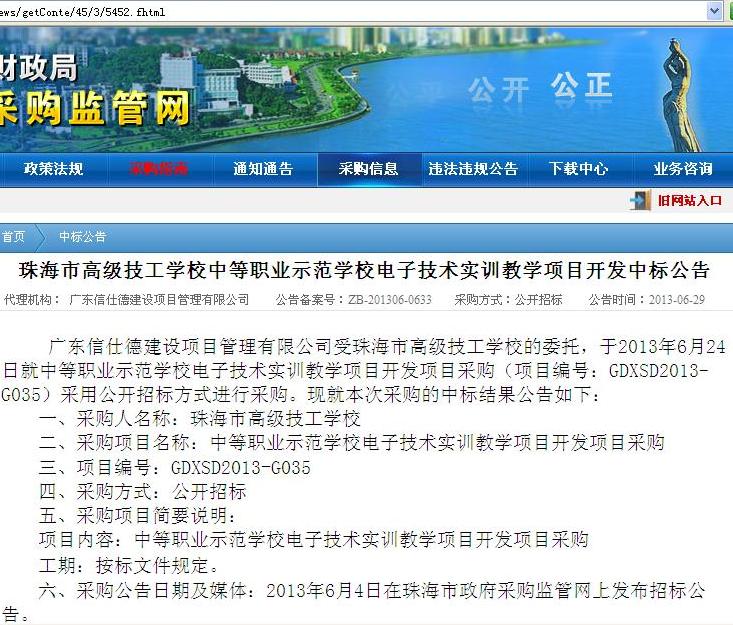 中標(biāo)喜訊:職業(yè)教育示范學(xué)校電子技術(shù)實訓(xùn)教學(xué)項目開發(fā)華升中標(biāo)