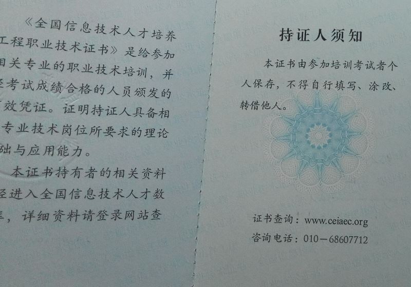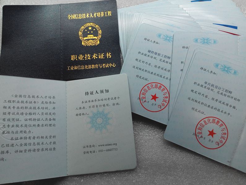 本次通過(guò)考試由工業(yè)和信息化部電子教育與考試中心頒發(fā)證書(shū)已到證分別有:
